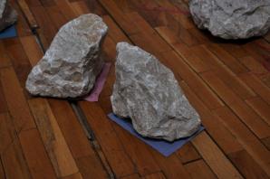 En visitant le mont Lovćen au tout début de notre séjour, nous avons eu la (mal)chance d’avoir notre vue et le magnifique panorama promis, bouchés par une brume épaisse. J’ai pourtant assisté à un spectacle éblouissant, de corps perdus apparaissant et disparaissant dans cette vaste masse blanche. Le vent poussait la brume et les pierres se dévoilaient furtivement sous nos yeux… Les photographies qui en résultent ont initié cette installation.